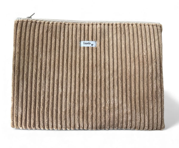 Housse d’ordinateur Lulu BeigeVelours cotelé beigeInterieur Vichy camelzip beige