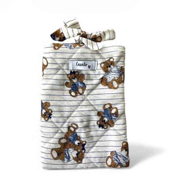 Modèle Teddy : Tissu extérieur: Coton matelassé crème avec oursons bleus Tissu intérieur: Coton bleu marine