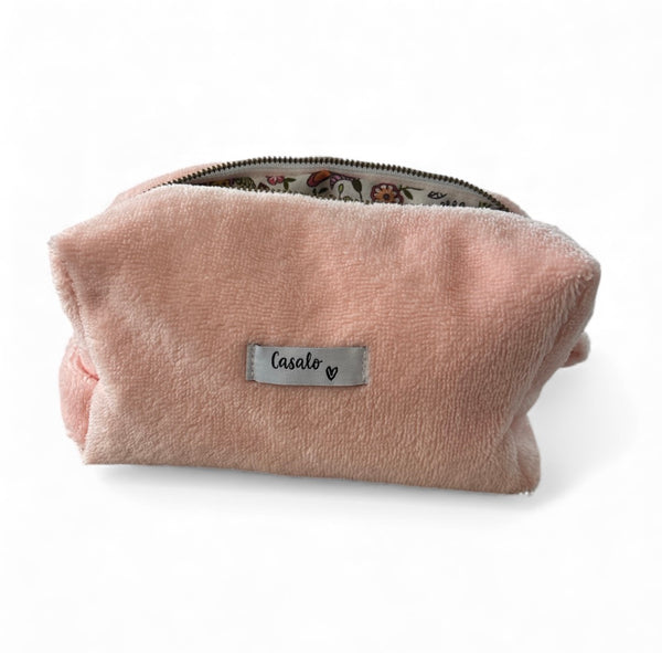Motif extérieur : éponge bambou rose clairMotif intérieur : coton fleuri blanc orange rose