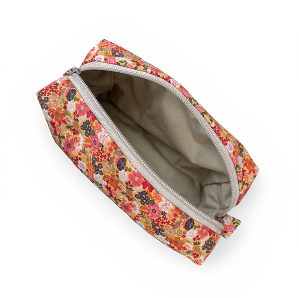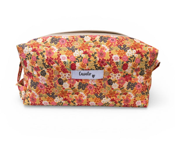Motif extérieur : Coton matelassé orange avec fleurs multicoloresMotif intérieur : coton enduit beige