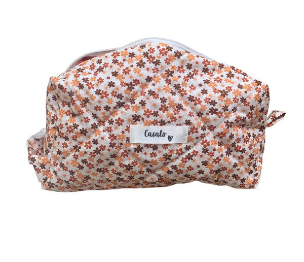 Extérieur : Coton blanc avec motifs fleurs orange et rougeIntérieur : coton rouge terracotta